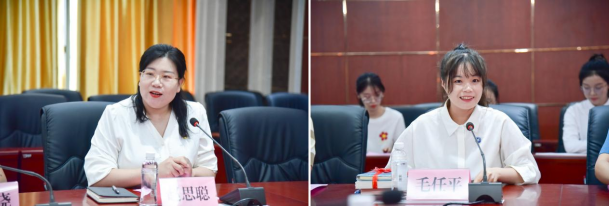 優(yōu)秀輔導(dǎo)員代表趙思聰、新入職輔導(dǎo)員代表毛任平發(fā)言