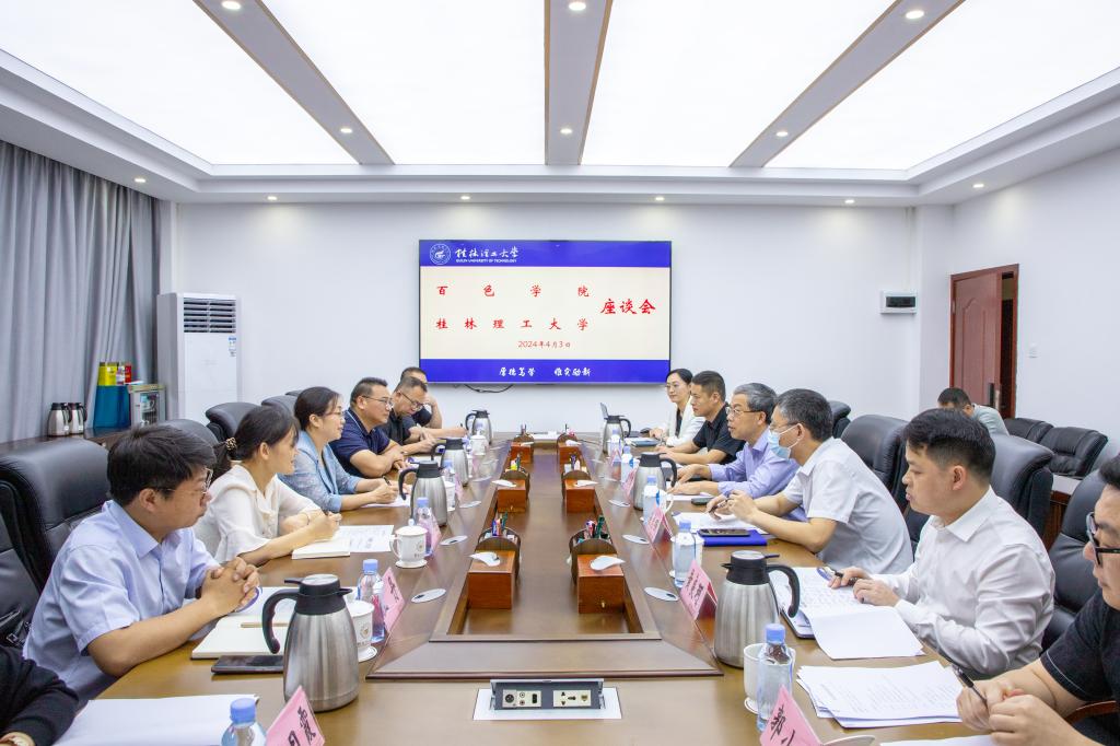 4月3日上午,百色學(xué)院黨委常委、副校長(zhǎng)劉芳一行7人來(lái)訪我校。我校黨委常委、副校長(zhǎng)黎貞崇在雁山校區(qū)行知樓會(huì)議室熱情接待了來(lái)訪客人。我校本科生院(教務(wù)處)、測(cè)繪地理信息學(xué)院、藝術(shù)學(xué)院、人文素質(zhì)教育教學(xué)部等相關(guān)單位負(fù)責(zé)人參加座談會(huì)。