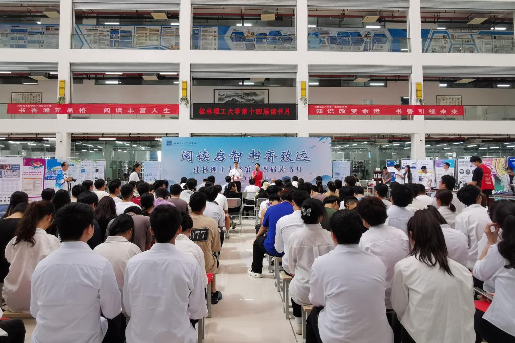 為貫徹落實(shí)黨的二十大關(guān)于深化全民閱讀活動的部署要求,廣泛激發(fā)師生的閱讀興趣,營造“愛讀書、讀好書、善讀書”的校園文化氛圍,打造“沉浸式”書香桂工,4月23日下午,由學(xué)校黨委宣傳部、圖書館、校團(tuán)委、人文素質(zhì)教育教學(xué)部聯(lián)合舉辦的桂林理工大學(xué)第十四屆讀書月活動在雁山校區(qū)圖書館正式拉開帷幕。