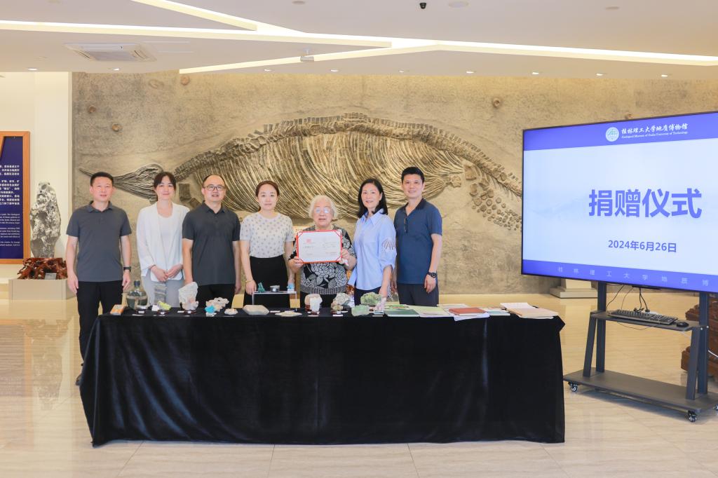 此次捐贈的物品包括袁奎榮教授生前所收藏的礦物巖石標(biāo)本20件、書籍手稿資料以及個人物品16件套,為我校的校史文化建設(shè)增添了寶貴財富。地質(zhì)博物館代表學(xué)校接受捐贈并為袁奎榮教授家屬頒發(fā)捐贈證書。