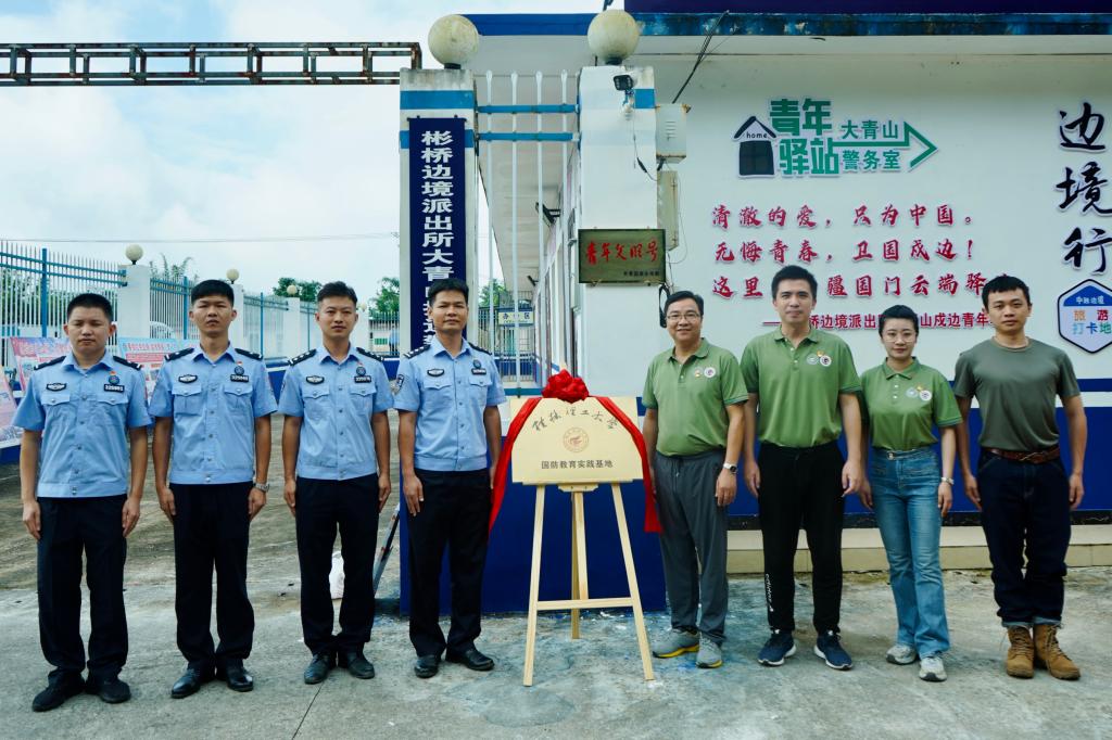 7月7日,學(xué)校在崇左市龍州縣彬橋邊境派出所大青山警務(wù)室舉行“國防教育實(shí)踐基地”揭牌儀式。龍州邊境管理大隊(duì)、彬橋邊境派出所、大青山警務(wù)室相關(guān)民警輔警及學(xué)校20余名師生代表參加活動。