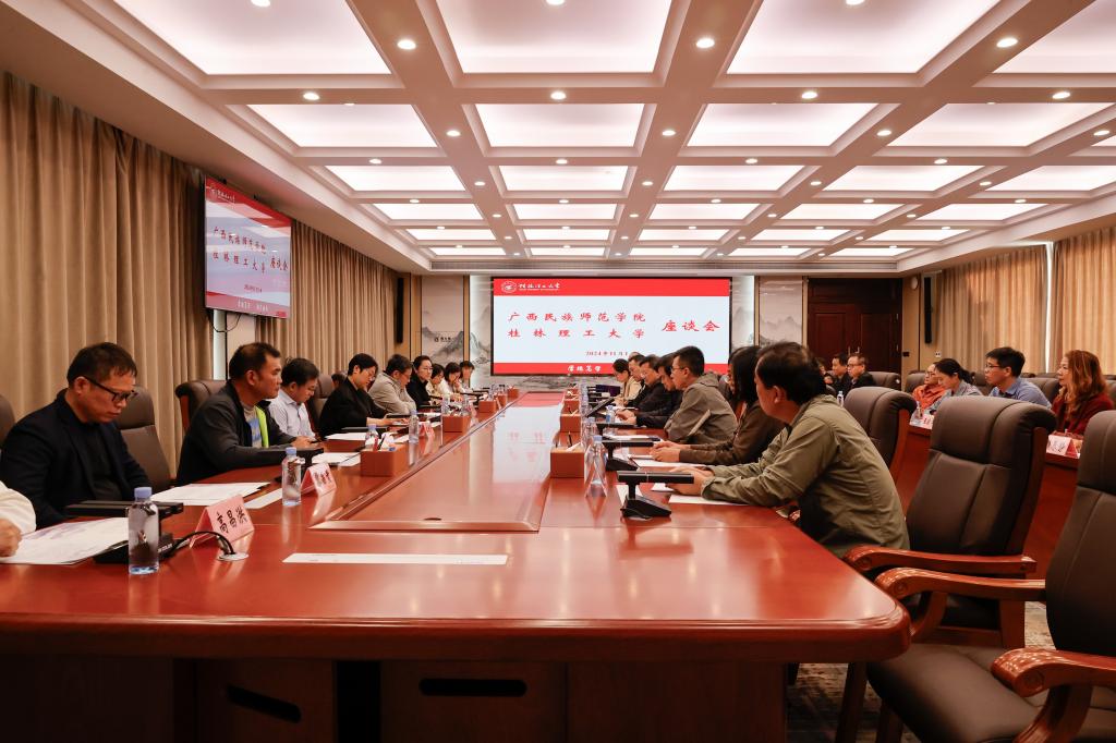吳志強(qiáng)對韋永恒一行的到來表示熱烈歡迎,并簡要介紹了我校歷史沿革、專業(yè)特色和辦學(xué)成就等方面情況。他表示,廣西民族師范學(xué)院堅持以鑄牢中華民族共同體意識為主線,凸顯“師范性、民族性、邊疆性”辦學(xué)特色,培育了尊師重教的良好風(fēng)尚,譜寫了民族團(tuán)結(jié)的生動畫卷,為地方基礎(chǔ)教育和經(jīng)濟(jì)社會發(fā)展培養(yǎng)了一大批優(yōu)秀人才。雙方要以本次交流為契機(jī),堅持大團(tuán)結(jié)大聯(lián)合,發(fā)揮各自特長優(yōu)勢,搭好連心橋,畫好同心圓,進(jìn)一步深化合作交流、拓寬互惠領(lǐng)域、促進(jìn)共同發(fā)展。