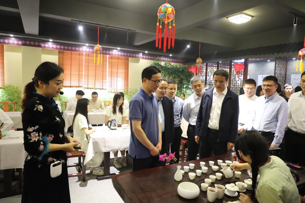 調(diào)研期間,丁東弟一行實(shí)地參觀了桂南民俗博物館、茶文化與茶藝實(shí)訓(xùn)室和少數(shù)民族傳統(tǒng)體育競技項(xiàng)目基地。
