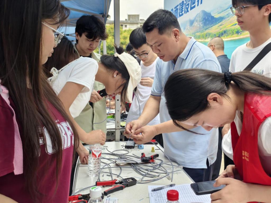 在中國移動扶綏分公司,學生深入數(shù)據(jù)機房、5G基站,通過輻射檢測儀實測通信安全,直觀感受“數(shù)字新基建”對邊疆發(fā)展的支撐作用;在專業(yè)工程師指導下,學生完成網(wǎng)線水晶頭制作、光纖熔接、無人機勘察等操作,掌握CRM系統(tǒng)電話卡制作全流程,培養(yǎng)數(shù)字技能;同時筆架山愛心協(xié)會會長分享壯族地區(qū)通信網(wǎng)絡覆蓋案例,解析“一根網(wǎng)線連通山里山外”的民族團結故事,通過案例解析,看到了數(shù)字技術如何打破地域限制,構建各民族共有精神家園。