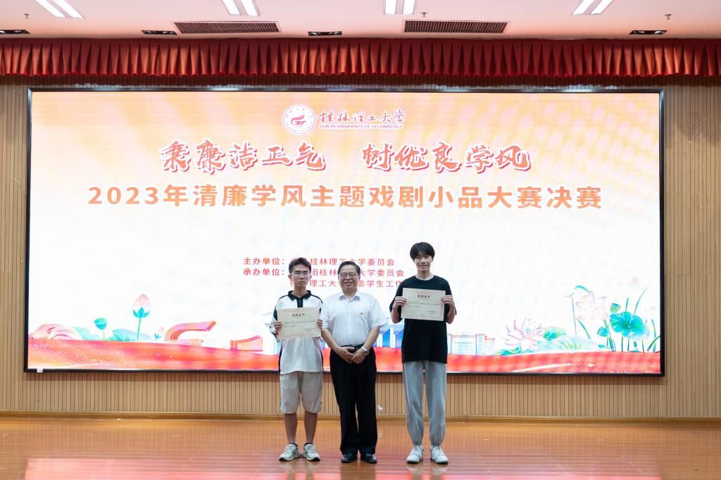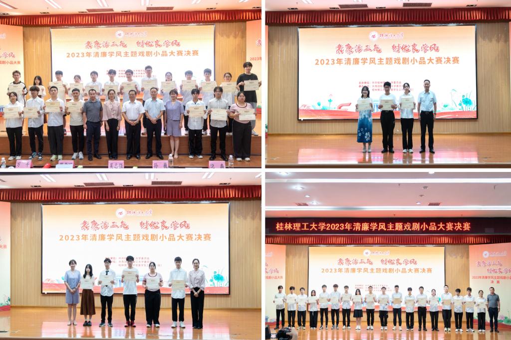 為貫徹落實(shí)學(xué)校深化“清廉桂工”建設(shè)工作要求,推進(jìn)學(xué)校新時(shí)代廉潔文化建設(shè),引領(lǐng)大學(xué)生投身崇德向善的道德實(shí)踐,積極踐行廉潔自律價(jià)值觀,6月18日晚,學(xué)校在雁山校區(qū)圖書館報(bào)告廳舉辦2023年清廉學(xué)風(fēng)主題戲劇小品大賽決賽。學(xué)校黨委副書記吳志強(qiáng)出席活動(dòng)。學(xué)校紀(jì)委辦監(jiān)察室巡察辦、學(xué)生工作部(處)、校團(tuán)委、人文素質(zhì)教育教學(xué)部等相關(guān)負(fù)責(zé)人,各學(xué)生社團(tuán)指導(dǎo)老師和學(xué)生代表參加活動(dòng)。學(xué)生工作部(處)、人事處、校團(tuán)委和人文素質(zhì)教育教學(xué)部等同志受邀擔(dān)任決賽評(píng)委。