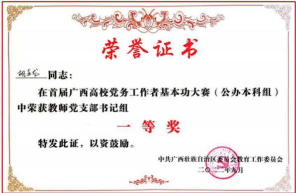 胡金龍同志獲廣西高校黨務(wù)工作者基本功大賽公辦本科院校組一等獎(jiǎng)