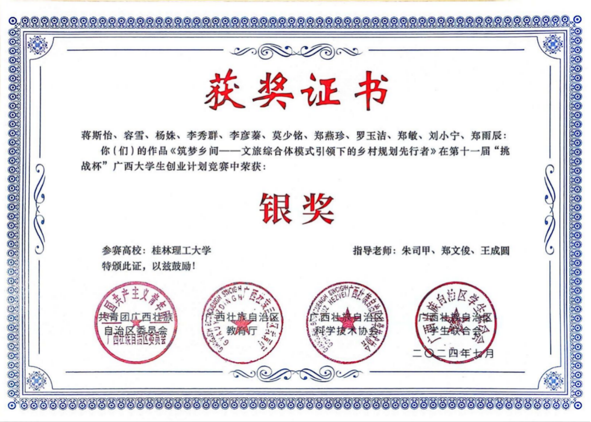 學(xué)生獲第十一屆“挑戰(zhàn)杯”廣西大學(xué)生創(chuàng)業(yè)計(jì)劃競(jìng)賽銀獎(jiǎng)
