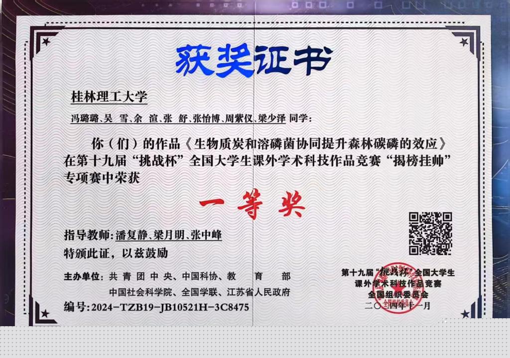 獲得第十九屆“挑戰(zhàn)杯”全國大學(xué)生課外學(xué)術(shù)科技作品競賽2024年度“揭榜掛帥”專項(xiàng)賽國賽一等獎(jiǎng)