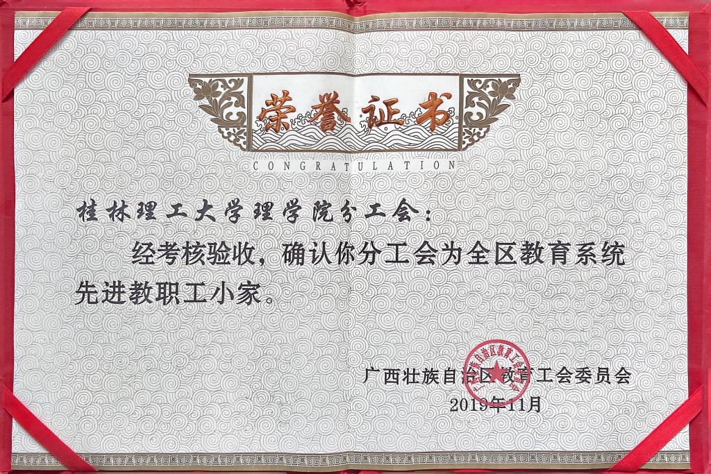 理學(xué)院分工會(huì)獲評(píng)全區(qū)教育系統(tǒng)先進(jìn)教職工小家