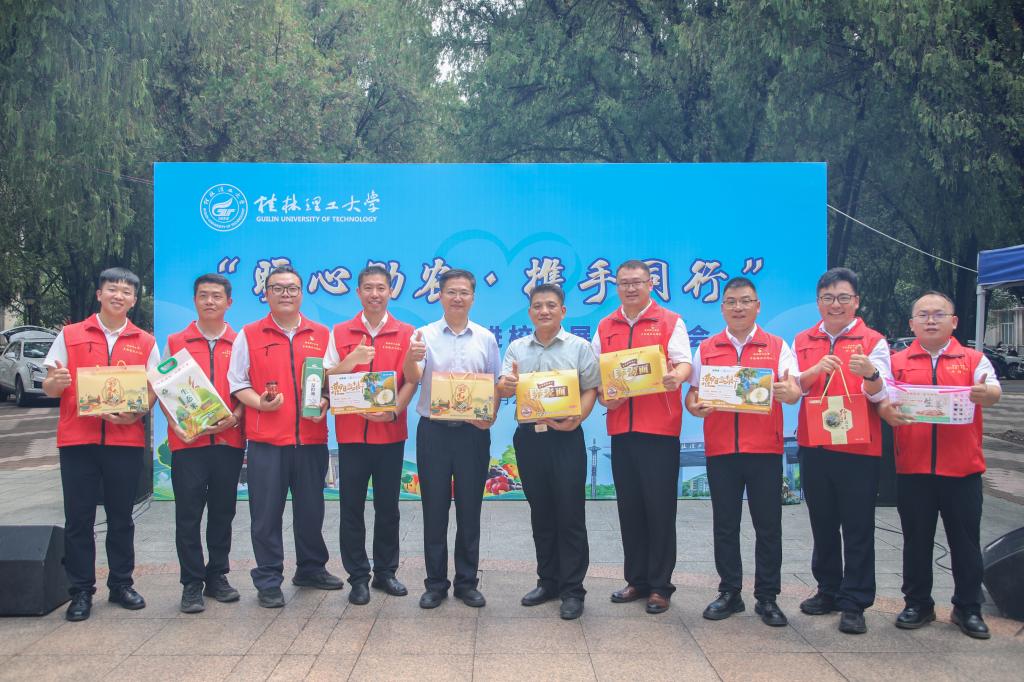 學校與灌陽縣領導在定點幫扶村農(nóng)特產(chǎn)品展銷區(qū)前與學校駐村工作隊合影